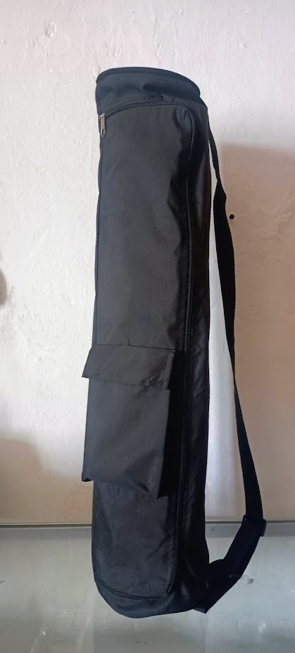 Este portamat artesanal negro combina diseño sobrio, resistencia y funcionalidad, ideal para quienes buscan un accesorio duradero y versátil para su práctica de yoga u otras disciplinas corporales.