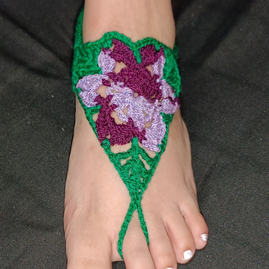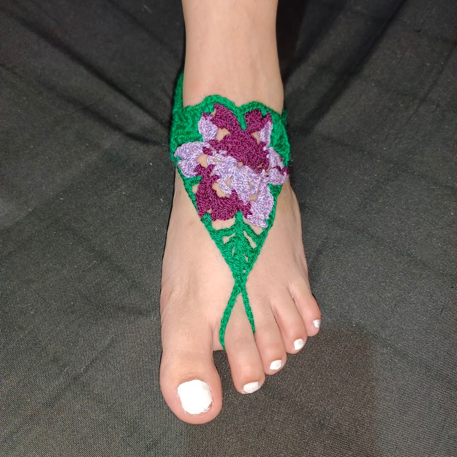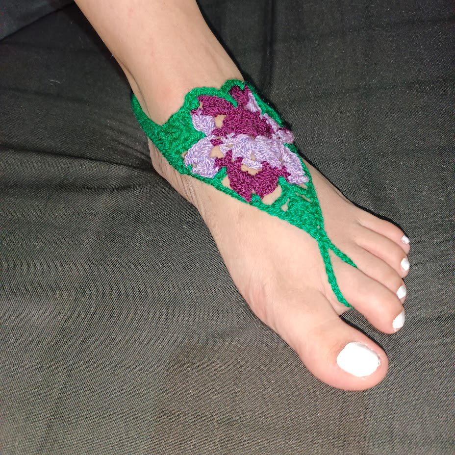 Sandalias Descalzas Crochet – violeta y verde